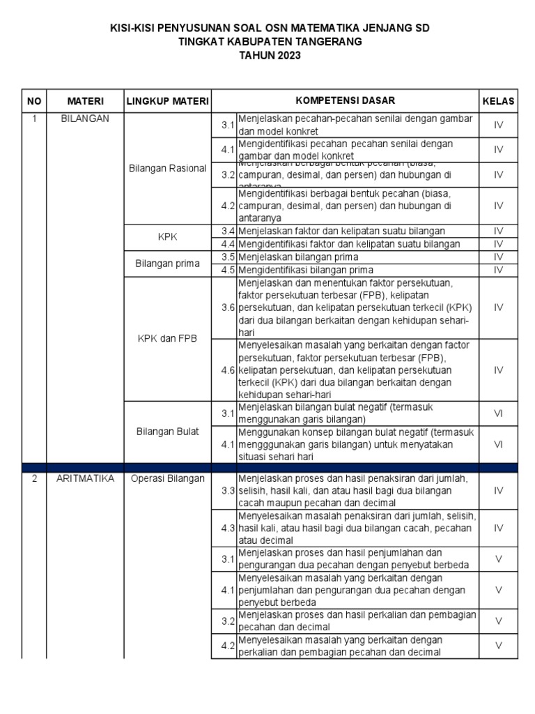 Meskipun kisi-kisi resmi dari penyelenggara OSN mungkin sedikit berbeda setiap tahunnya, secara umum, soal-soal OSN SD kelas 3 akan mencakup beberapa area utama. Pemahaman terhadap kisi-kisi ini akan membantu siswa memfokuskan materi belajarnya.