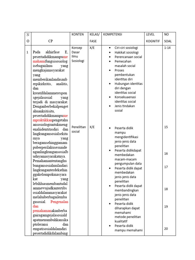 Catatan: Jumlah soal dalam tabel akan disesuaikan dengan kebutuhan evaluasi (misalnya, 20-30 soal untuk ulangan harian).