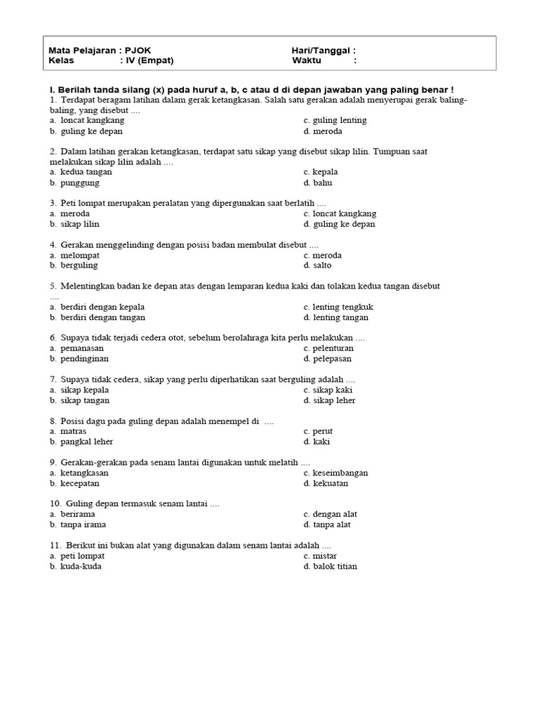 Untuk memberikan gambaran lebih konkret, berikut beberapa contoh tipe soal yang umum ditemukan dalam PTS PJOK kelas 4 SDIT: